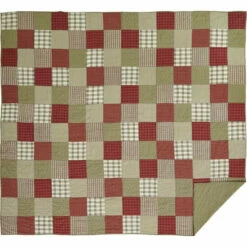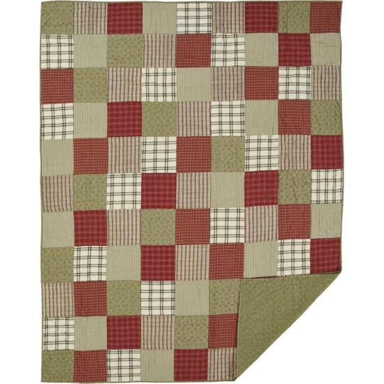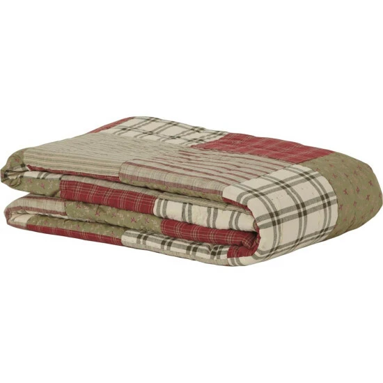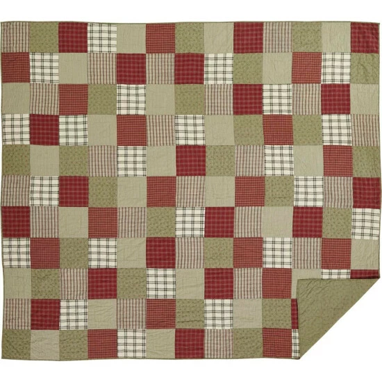 - Block layout in plaid, striped, and ditsy fabrics offers homey sophistication