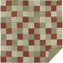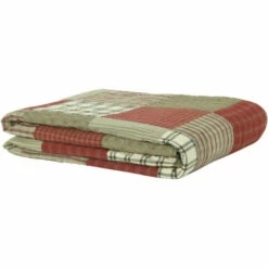 - Stitch in the ditch and echo hand-quilting on various brick red, sage, and khaki fabrics