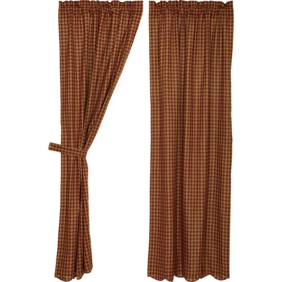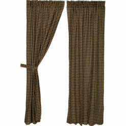 Avoid the glare of the sun while adding primitive decor to your windows with the 84×40 Navy Check Panel Set of 2. Soft white cotton lines the inside of the panel with a scalloped edge that showcases the beautiful navy blue and natural tan hues. Easily hang the country-style geometric panels with the 3.25” diameter rod pocket. Comes with a set of 2 primitive panels.