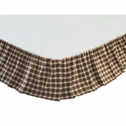 - Chocolate, creme, and almond windowpane plaid gathered ruffle with 16″ drop