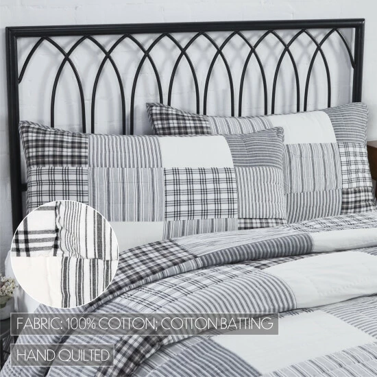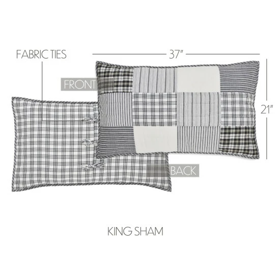 Instantly transform your home with the 21×37 Sawyer Mill Black King Sham. Rich and beautiful black and soft white colors add a farmhouse element to your country setting while offsetting your decor. The quilted, straight edge design, stitch-in-the-ditch quilting, and unique tie closures complete the look for a classic country approach with a touch of farmhouse appeal.