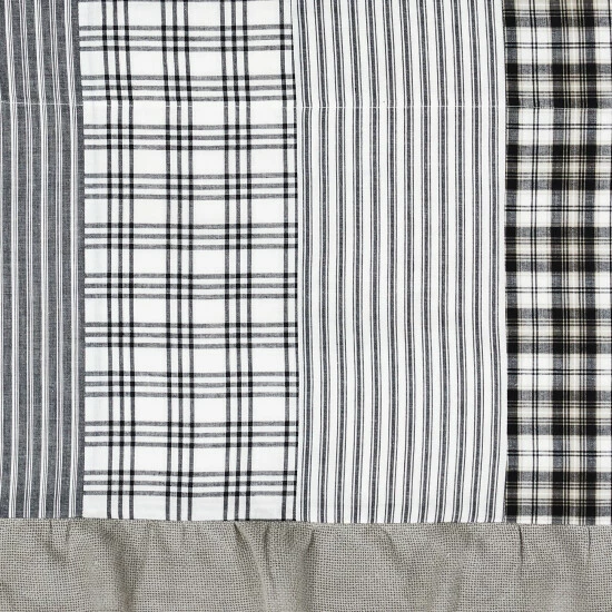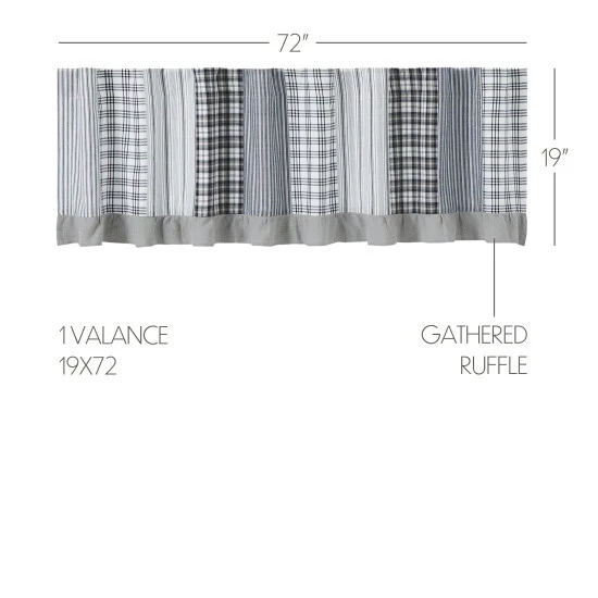FARMHOUSE DECOR: Traditional handcrafted style that compliments any farmhouse or country home. Our ruffled patchwork valance features timeless black and soft white shades.