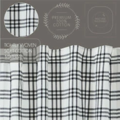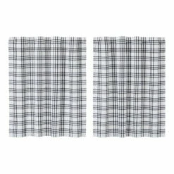 The Sawyer Mill Black Plaid Tier Set of 2 brings warmth to your living area with farmhouse colors and a cozy design. This set of 2 tiers feature richly black and soft white shades with a straight edge, flat weave. Our L36xW36 tiers are finished with convenient hanging loops that add country appeal to your kitchen or living room.