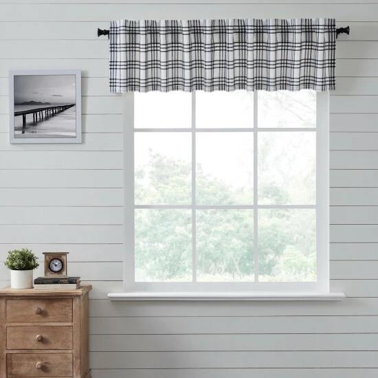 FARMHOUSE DECOR: Traditional handcrafted style that compliments any farmhouse or country home. Our plaid valance features timeless black and soft white shades.