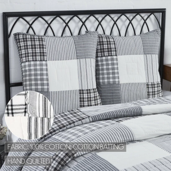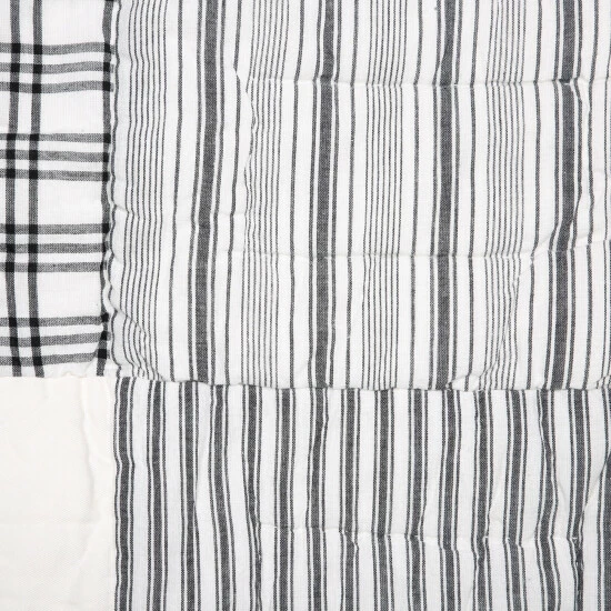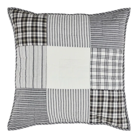 FARMHOUSE DECOR: Classic black and soft white arranged in a patchwork design enhance the farmhouse look of this cozy sham. Country-style ties allow you to open and close this handcrafted sham with ease.