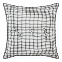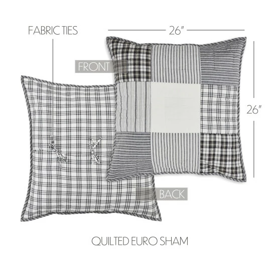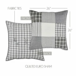 Instantly transform your home with the 26×26 Sawyer Mill Black Quilted Euro Sham. Rich and beautiful black and soft white colors add a farmhouse element to your country setting while offsetting your decor. The flat weave, straight edge design, stitch-in-the-ditch quilting, and unique tie closures complete the look for a classic country approach with a touch of farmhouse appeal.