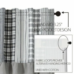 FARMHOUSE DECOR STYLE: Traditional handcrafted style that compliments any farmhouse or country home. Our patchwork panel set with attached valance features flat weave fabric combined with black and soft white hues for a timeless country appeal.