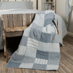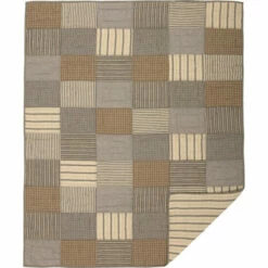 - STITCH IN THE DITCH: This throw contains stitch in the ditch and echo hand-quilting on charcoal grey, khaki, and creme fabrics