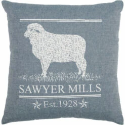 - FARMHOUSE DECOR: our Sawyer Mill blue farm animal pillow is perfect for your cozy entryway nook, living space, bedroom, or placed on an upholstered bench at the end of your bed. A denim blue backdrop showcasing a lamb and grain sack stripes stenciled in a distressed soft white gives your space a soothing vintage feel with a touch of classic farmhouse style. Finish your home decor and mix and match a variety of our Sawyer Mill Blue pillows for a complete farmhouse look when decorating your cozy abode for any season.