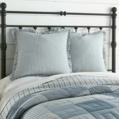 Create a country-chic, vintage look in your farmhouse style bedroom with the Sawyer Mill Blue Ticking Stripe Fabric Euro Sham 26×26. Timeless and true, this euro sham features beautifully textured cotton fabric in denim blue and soft white ticking stripes offering a simple, romantic feel you can’t resist. Coordinates well with the Sawyer Mill Blue Ticking Stripe bedding.