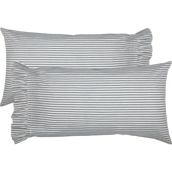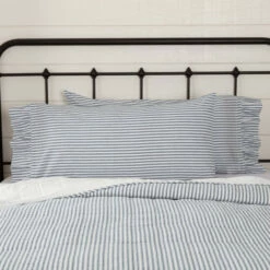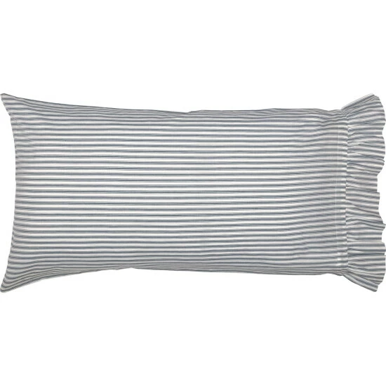 The Sawyer Mill Blue Ticking Stripe King Pillow Case Set of 2 21×40 completes the look of your bed with a classic, vintage feel. Featuring denim blue and soft white ticking stripes on beautifully textured cotton fabric, finished with a ruffle at the opening adding a touch of rustic romance. Coordinates well with the Sawyer Mill Blue Ticking Stripe bedding.