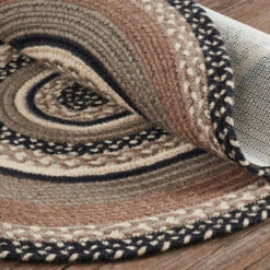 The Sawyer Mill Charcoal Creme Oval Jute Rug makes a textured addition to your farmhouse home decor; This 24×36 inch rug showcases beautiful concentric braids of khaki, charcoal, and dark creme; Durable machine stitching holds the braiding together even with the increased wear and tear from constant use; Includes a separate 100% PVC rug pad that works on most floor types for non-slip quality.