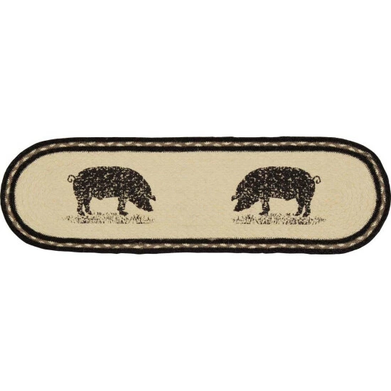 - FARMHOUSE PIG: This stair tread contains bleached braided jute center accented with black, bleached, silver, and grey taupe braided border, pig stenciled on each end in distressed black