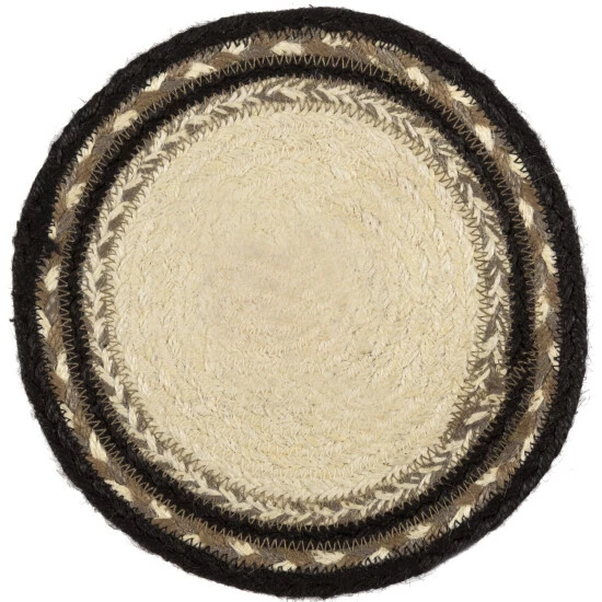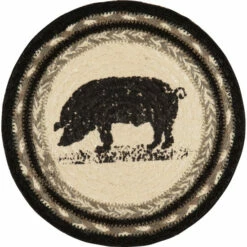 - FARMHOUSE PIG: This trivet contains bleached braided jute center accented with black, bleached, silver, and grey taupe braided border, pig stenciled in center in distressed black