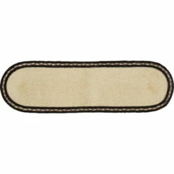 The oval Sawyer Mill Charcoal Poultry Jute Stair Tread brings a Farmhouse look to your staircase. A rooster is stenciled in distressed black on each end over beautiful solid ivory jute surrounded by concentric braids of black, grey taupe, silver, and ivory. Latex spray on reverse to prevent slippage.
