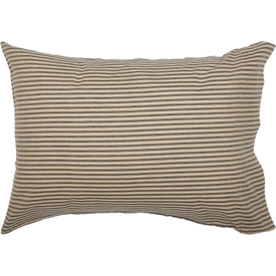 Revamp your farmhouse style bed with the Sawyer Mill Charcoal Ticking Stripe Standard Pillow Case Set of two 21×40. This farmhouse Standard Pillow Case Set showcases repeating, black ticking stripes woven into dark creme cotton base fabric; finished with a 4 inch hem fold on the opening end; reverses to same as front.