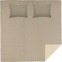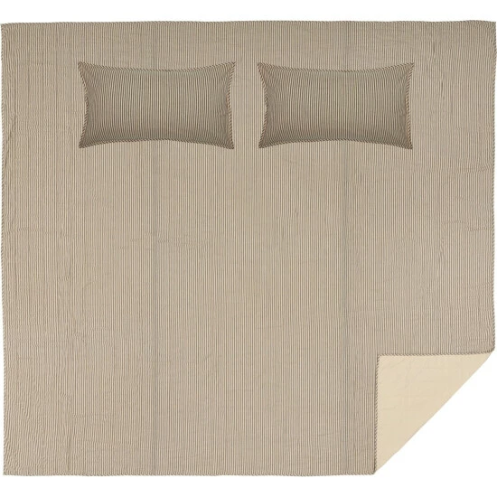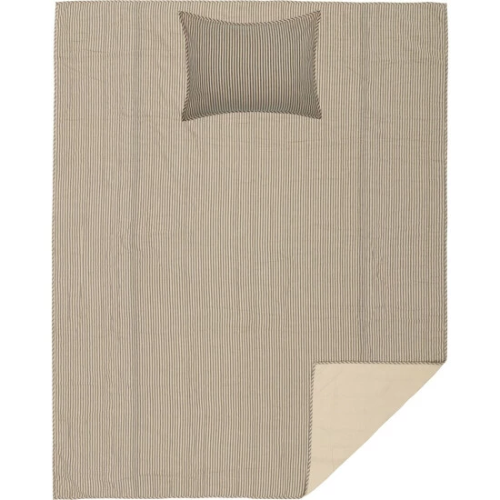 Style your shabby-chic bedroom with the Sawyer Mill quilt set. The tan cotton set is detailed with a hand-quilted charcoal stripe pattern for country charm. Matching shams are included to complete the cozy look.