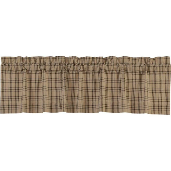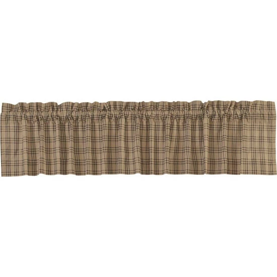 - PLAID: Large-scale black plaid woven into a dark tan base