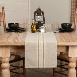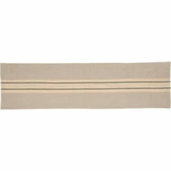 - FARMHOUSE STRIPE: Creme and charcoal grey striped cotton fabric appliqued horizontally across the center