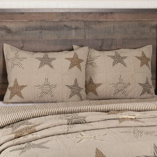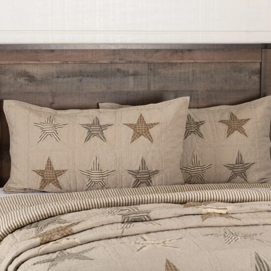 - 5-POINT STAR: This pillow sham contains 6 total stars, each alternating in ash grey, creme, and black fabrics