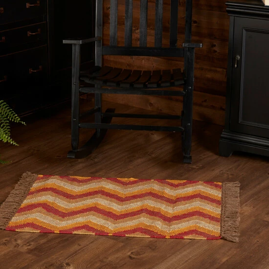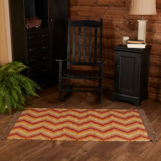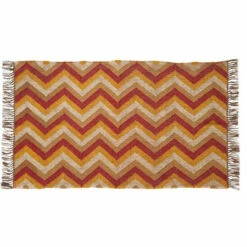 - Chevron stripes of fresh red, sunny yellow with white accents