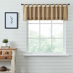 PREMIUM CONSTRUCTION: Our valances are crafted from the finest 100% cotton material, allowing them to last for years to come. Features a tab top for easy hanging and soft white cotton lining.,FARMHOUSE DECOR: Traditional handcrafted style that compliments any farmhouse or country-style home. Our valance features natural tan and soft black hues.,LIGHT FILTERING: With cotton lining and a close dobby appearance, this striped valance gently lets in light while providing a little extra privacy. Place in your living room or bedroom to open up and brighten your space.,COORDINATING ACCESSORIES: Pair this farmhouse valance with matching throws, shams, pillows, panels, and quilts from the Burlap Natural collection.,SIZE: Natural tan and soft black hues give this valance a modern country feeling while keeping a farmhouse design. The generous size of 16×90 inches is tailored to fit in almost any traditional window of your home.,EASY CARE: To give your cotton valance as many years of quality comfort as possible, place it in the wash on a gentle cycle, and afterward tumble dry low. To capture the true essence of the country, hang the comfortable valance out to dry on a clothesline! Any wrinkles which may appear after drying can easily be ironed out at your convenience.