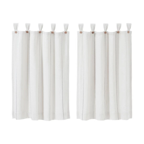 Create warmth in your living space with the Stitched Burlap Tier Set of 2 that has a farmhouse flair and a cozy design. This set of 2 tiers feature dove grey and soft white hues with a straight edge textured dobby weave. Our L36xW36 tiers are finished with a convenient tab top that adds cottage-style appeal to your kitchen or living room.