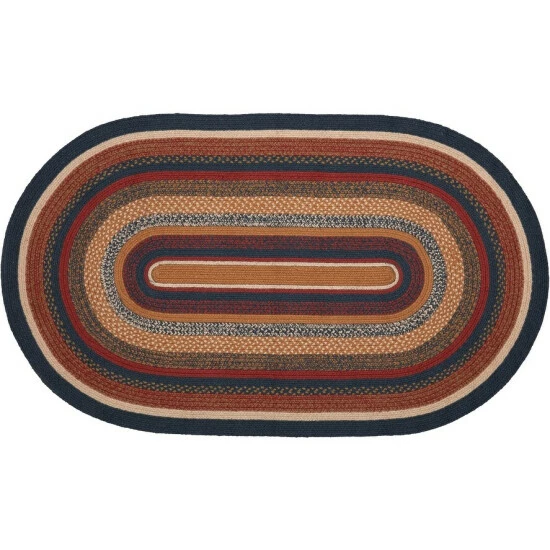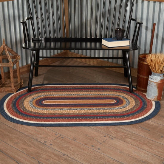 Bring a fresh pop of color to your country decor with the eye-catching Stratton Jute Oval Rug. This colorful blue, ruby red, and tan rug adds striking whimsy to your floor. Made completely from braided jute, our 36″x60″ rug contributes a warm, versatile design to any room as the cozy palette inspires primitive, country, and rustic-themed looks. This folksy rug lights up your home with vivid color and natural texture. Includes a separate 100% PVC rug pad that works on most floor types for non-slip quality.