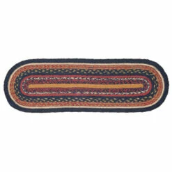 - Concentric braids of navy, ruby, copper, and light tan jute