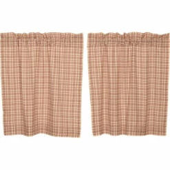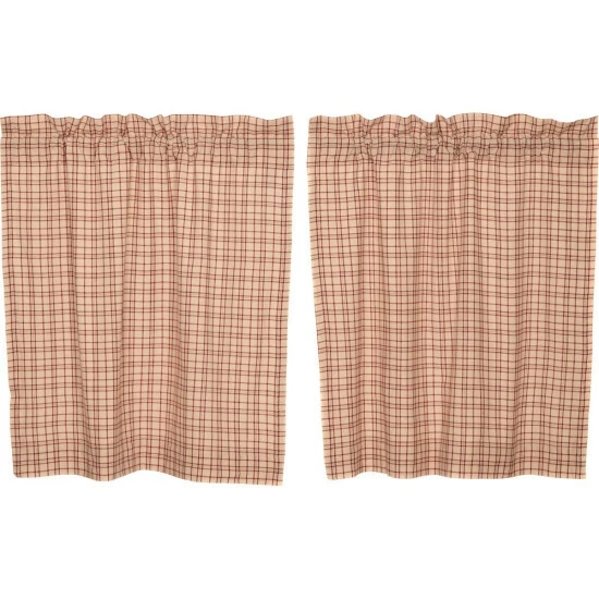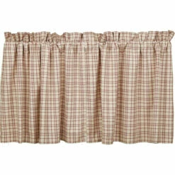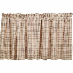 Dressing your windows in a charming rustic fashion, the Tacoma Tier Set brings a fresh take on lodge living to your home. Β Crafted from 100% cotton creme and deep red plaid with narrow evergreen accents, our L24xW36 curtain set of two tastefully adds warm country appeal and rich color to your kitchen, dining room, or living room. Β Machine washable and iron-safe, these tier curtains are lined with white cotton to keep the sun’s glare out of your eyes and offers a rod pocket for easy hanging.