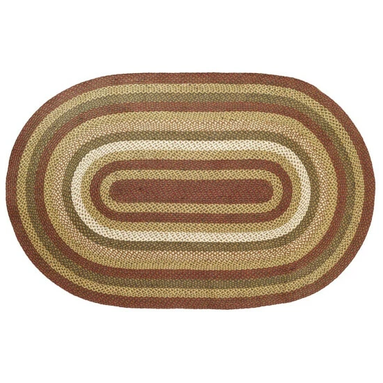 Welcome all who enter your home or retreat with the Tea Cabin Oval Jute Rug. This 60″x96″ rug showcases beautiful concentric braids of red, yellow, sage green, and creme. Durable machine stitching holds the braiding together even with the increased wear and tear from constant use. Reverses to the same as front. Includes a separate 100% PVC rug pad that works on most floor types for non-slip quality.