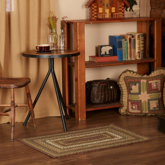 The Tea Cabin Jute Rug makes a textured rustic addition to your home decor. This 24″x36″ rug showcases beautiful concentric braids of moss green, crimson, and creme. Durable machine stitching holds the braiding together even with the increased wear and tear from constant use. Reverses to the same as front. Includes a separate 100% PVC rug pad that works on most floor types for non-slip quality.