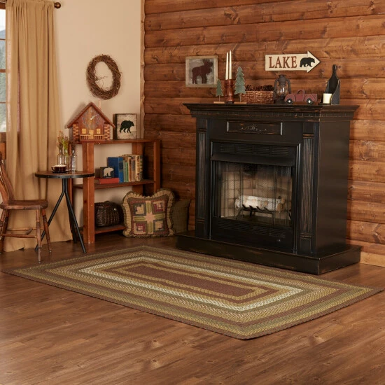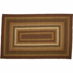 Enhance the look of your home with the Tea Cabin 60″x96″ Rectangle Jute Rug. Featuring concentric, mixed braids of moss green, crimson, and creme for a classic rustic, country look. Contains machine stitching that holds the braiding together even with increased wear and tear. Reverses the same as the front and includes a separate 100% PVC rug pad that works on most floor types for non-slip quality.