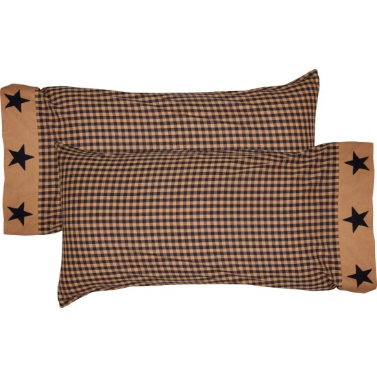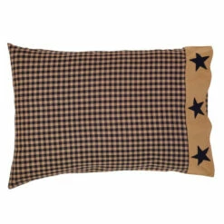 - 4″ trim of solid tan border with embroidered black 5-point stars at opening