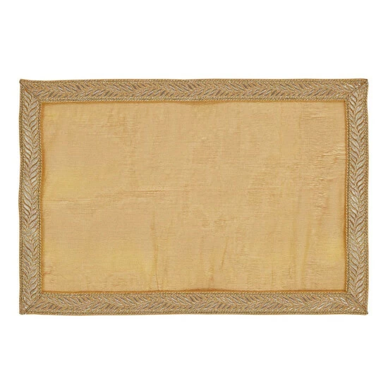 - Shimmery gold tulle embellished with gold vine trim around outside edge