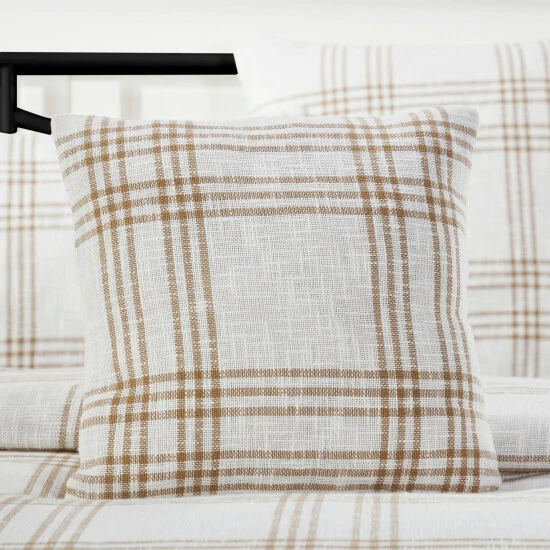 PREMIUM CONSTRUCTION: Our items are built to last for years to come. Our pillow covers are made with durable 100% cotton with machine-stitched double sewn seams for extra durability.,FARMHOUSE DESIGN: Traditional handcrafted style that compliments any farmhouse or country home. Our pillow cover features a golden tan and soft white in a traditional plaid pattern.,COORDINATING ACCESSORIES: Pair this farmhouse pillow cover with matching throws, shams, pillows, panels, and valances from the Wheat Plaid collection.,EASY CARE: To give your textured cotton pillow cover as many years of quality comfort as possible, place it in the wash on a gentle cycle, and afterward tumble dry low. If you want to capture the true essence of farmhouse living, let this country-style pillow cover hang dry on a line. The 100% cotton fabric is safe to iron for your convenience.,SIZE: Golden tan and soft white hues give this pillow cover a modern farmhouse feeling while keeping a country design. The generous size of 18×18 inches is perfectly tailored for a normal pillow covering.