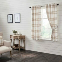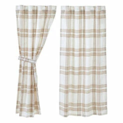 PREMIUM CONSTRUCTION: Our panels are built to last for years to come with durable machine-stitched 100% cotton material. Features include white cotton lining and a 3.25-inch rod pocket for easy hanging, and 2 matching tie-backs.,FARMHOUSE DECOR STYLE: Traditional handcrafted style that compliments any farmhouse or country-style home. Our panels feature textured fabric combined with golden tan and soft white hues for a timeless country appeal.,COORDINATING ACCESSORIES: Pair these farmhouse short panels with matching throws, shams, pillows, quilts, and valances from the Wheat Plaid collection.,EASY CARE: To give your textured cotton short panels as many years of quality comfort as possible, place them in the wash on a gentle cycle, and afterward tumble dry low. If you want to capture the true essence of farmhouse living, let these country-style panels hang dry on a line. The 100% cotton fabric is safe to iron for your convenience.,SIZE: Golden tan and soft white hues give these panels a modern farmhouse feeling while keeping a country design. The generous size of 63×36 inches is tailored to fit in almost any traditional window of your home.