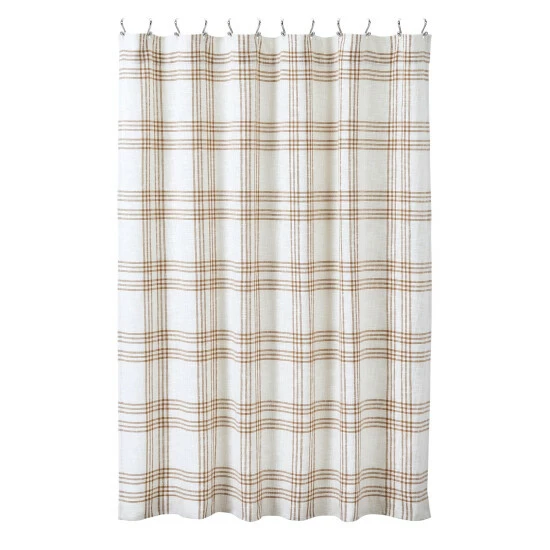 PREMIUM CONSTRUCTION: Our high-quality pieces are built to last for years to come. Our 100% cotton traditional plaid shower curtain is expertly machine-stitched. Features a straight-edged, textured woven weave and a 3-inch rod pocket for hanging. A plastic liner is recommended to keep your primitive shower curtain in top condition.,FARMHOUSE DECOR: With over two decades of experience crafting goods for American homes, our items are built to last for years to come. Features a traditional style that compliments any farmhouse or country-style home.,COORDINATING ACCESSORIES: Pair this farmhouse shower curtain with matching throws, shams, pillows, panels, and valances from the Wheat Plaid collection.,EASY CARE: To give your textured cotton shower curtain as many years of quality comfort as possible, place it in the wash on a gentle cycle, and afterward tumble dry low. If you want to capture the true essence of farmhouse living, let this country-style shower accessory hang dry on a line. The 100% cotton fabric is safe to iron for your convenience.,SIZE: Golden tan and soft white hues give this shower curtain a modern country-style while keeping to a farmhouse design. The generous size of 72×72 inches is tailored to fit with any traditional shower in your home.