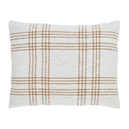 Accent your home with the 21×27 Wheat Plaid Standard Sham. Rich and beautiful golden tan and soft white colors add a farmhouse element to your country setting while complementing your decor. The straight edge, woven weave, and unique button closures complete the look for a classic country approach with a touch of farmhouse appeal.