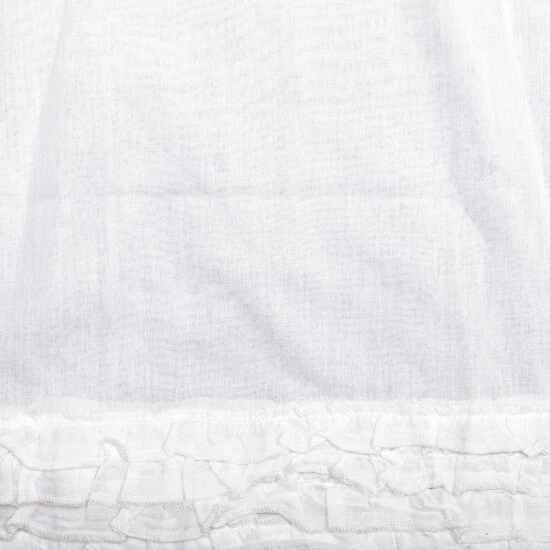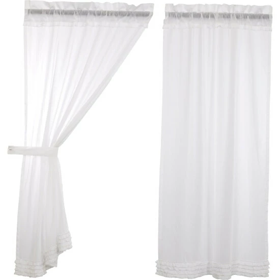 The White Ruffled Sheer Short Panel Set focuses on lightweight design. This window treatment’s slightly transparent quality provides an airy feel throughout the home. The thin layer of ruffling adds a touch of vintage to the overall farmhouse look of our all-cotton 63×36 curtains. This drapery set includes tiebacks and a rod pocket. Soft and classy, the impeccable workmanship and pleasing simplicity make a great choice for a variety of decor styles.