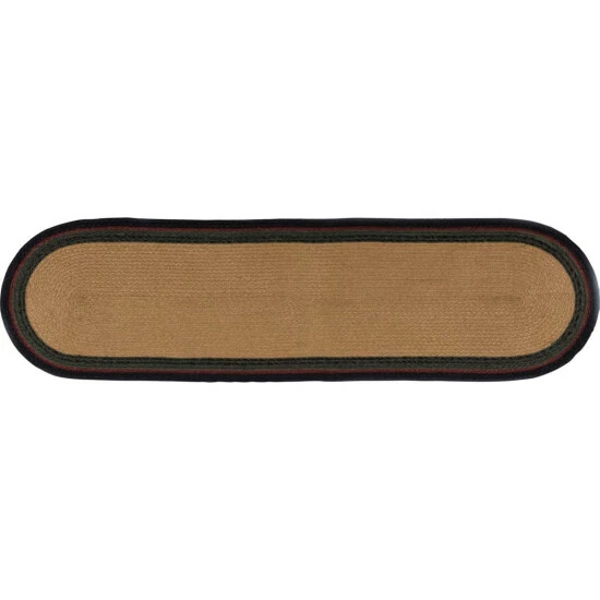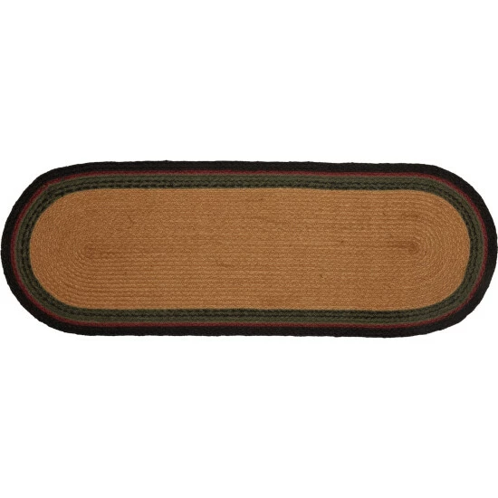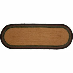 - Concentric braids of black, crimson, and army green jute with solid dark tan center