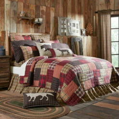RUSTIC DECOR: This Wyatt Quilt Set adds rustic plaids and stripes in warm colors to your bedroom decor. Create the cozy look you want in your log cabin, lake house, or lodge.