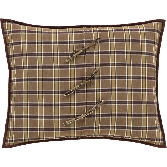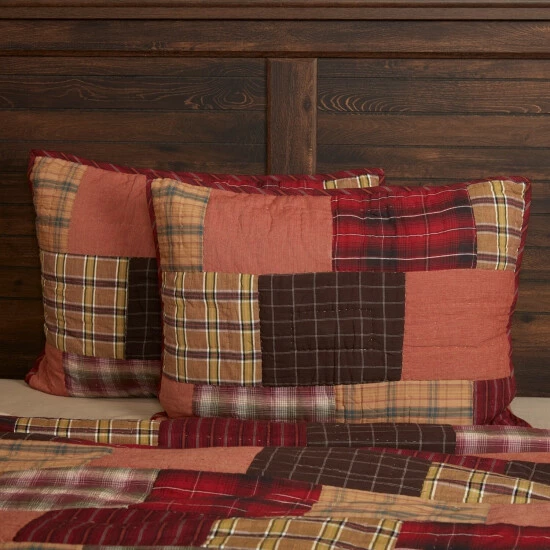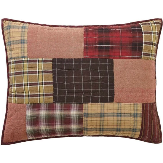 Let this colorful quilted pillow cover bring earthy inspiration to your bedroom and overall home decor. The Wyatt Sham decorates your rustic bed with expert echo hand quilting on various colorful plaid and striped fabrics. This pillow sham reverses to a uniquely multi-hued plaid with 3 tie closures. Made with 100% cotton, our patchwork cover is both machine washable and iron-safe.