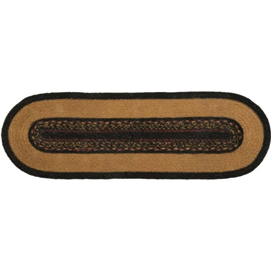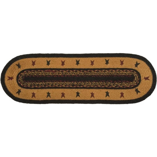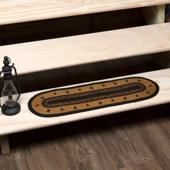 - PRIMITIVE PALETTE: This stair tread contains concentric solid and mixed braids of mustard tan, black, and burgundy