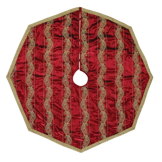 - Features 3 Christmas red chalk button closures and loops to secure skirt around tree